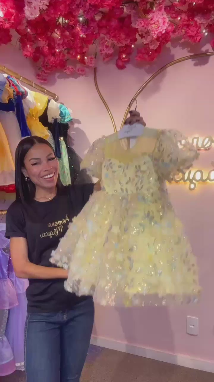 Vestido de Festa Infantil Aurora com Flores e Brilho